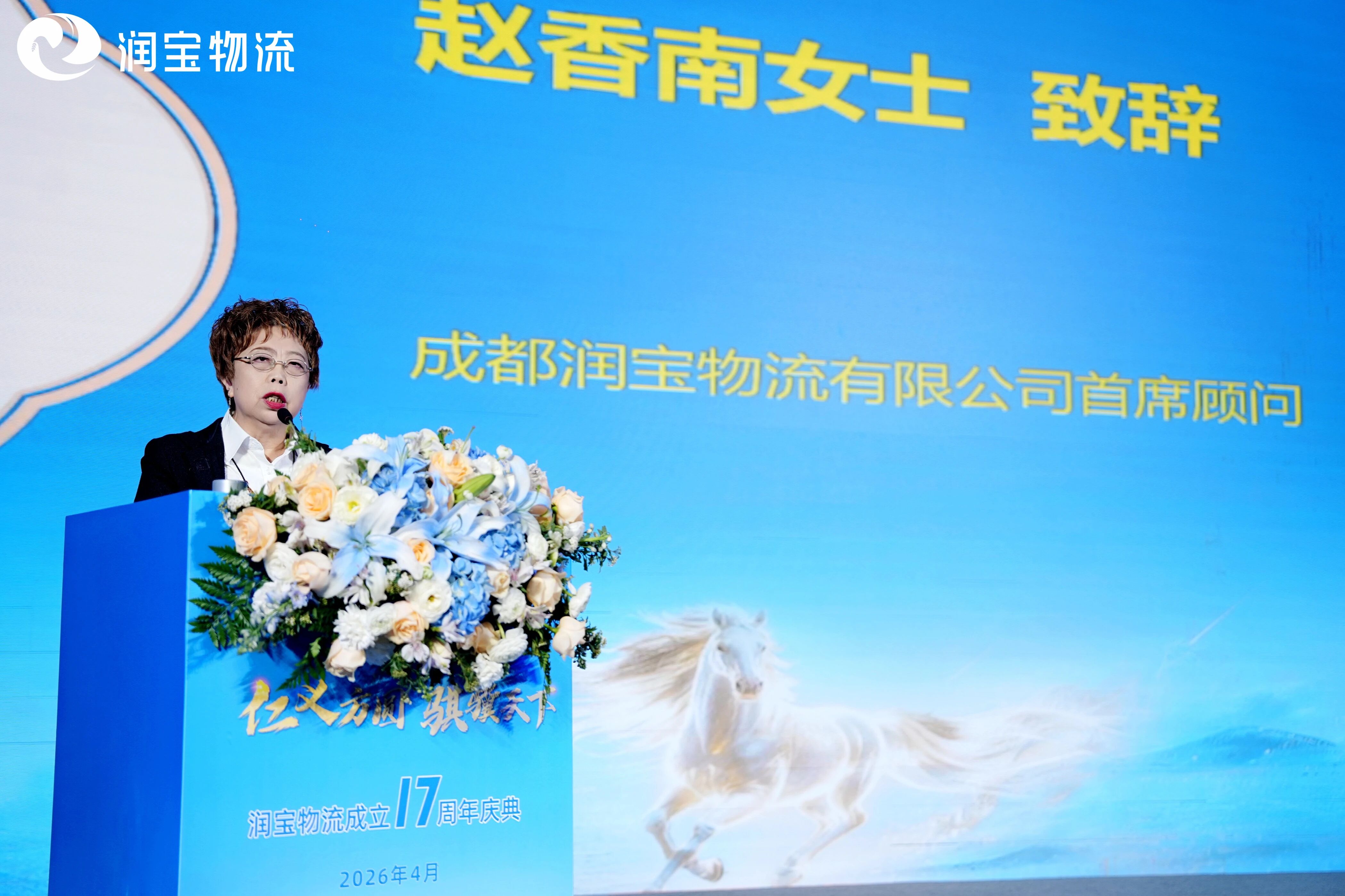 盛会正式拉开帷幕。成都润宝物流有限公司首席顾问赵香南女士的讲话,充分肯定润宝物流“仁义相守”的行业口碑,并寄语全体润宝人在新起点上继续秉持仁义之心,以更开放的姿态拥抱行业变革,推动物流生态健康发展。